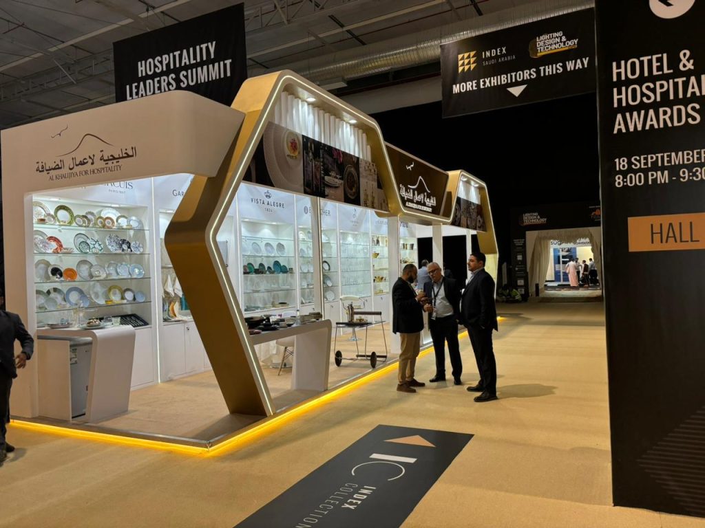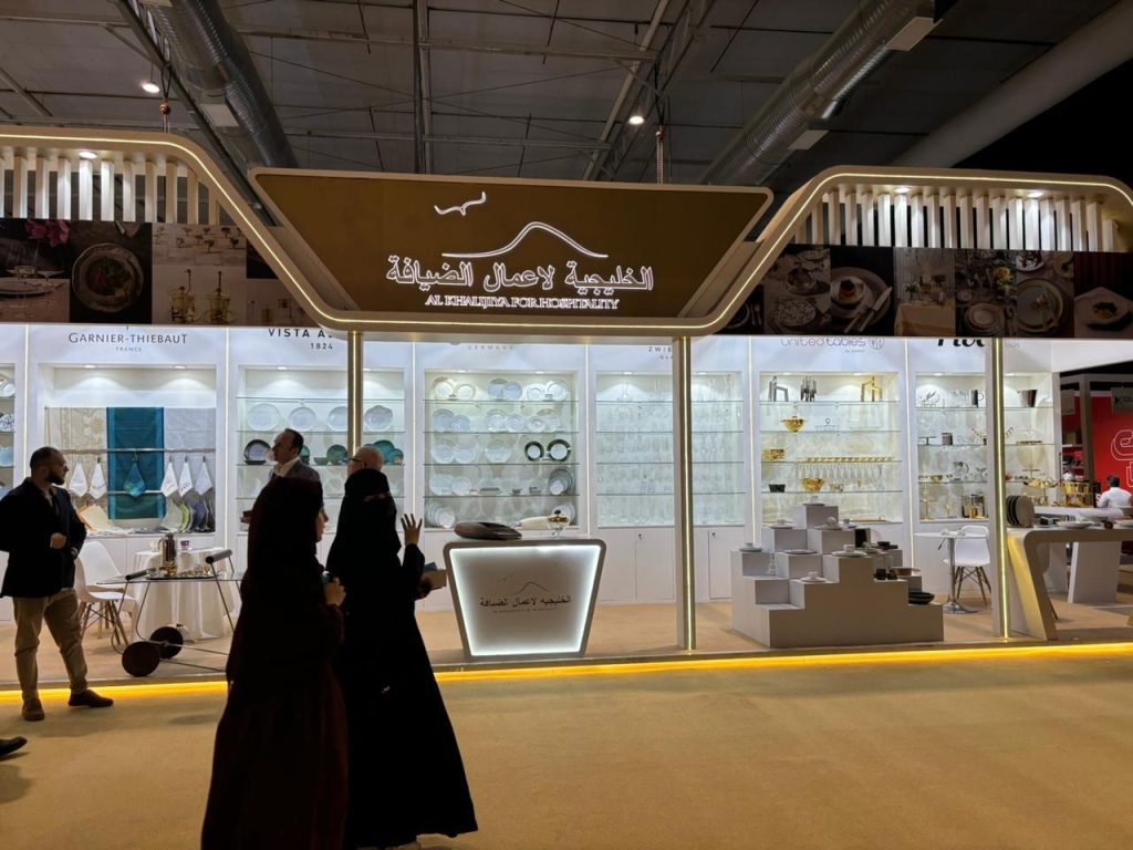 A glimpse of our full booth setup, proudly showcasing our company’s brands and innovations. Designed to reflect our commitment to quality, service, and hospitality excellence, this space welcomed industry professionals and partners from across the region.